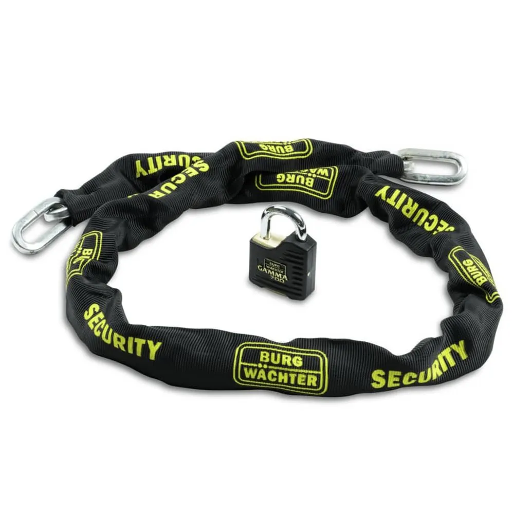 Este candado de cadena de seguridad de modelo GKM 10/150/700 de la marca BURG-WÄCHTER mide 150 cm de largo y es ideal para bloquear tu bicicleta, motocicleta o scooter. El candado de bicicleta incluye una cadena cuadrada endurecida con un diámetro de 10 mm, lo que garantiza la resistencia al corte y aserrado. La funda textil protege tu bicicleta o equipo de arañazos. El candado cilíndrico que se incluye proporciona resistencia a la extracción. El candado tiene un cuerpo de latón duradero cubierto con una cubierta de plástico. Además, el grillete de cadena es ultraduro y está asegurado por un bloqueo de rodamiento de bolas doble. La cerradura de cilindro también está protegida contra múltiples perforaciones. Color: Negro y amarillo Material: Acero Longitud de la cadena: 150 cm Grosor de la cadena: 10 mm Cadena de acero cuadrada ultradura Funda de tela Con candado cilíndrico de latón con tapa de plástico Un doble rodamiento de bolas bloqueo asegura la cadena. Protegido contra múltiples perforaciones