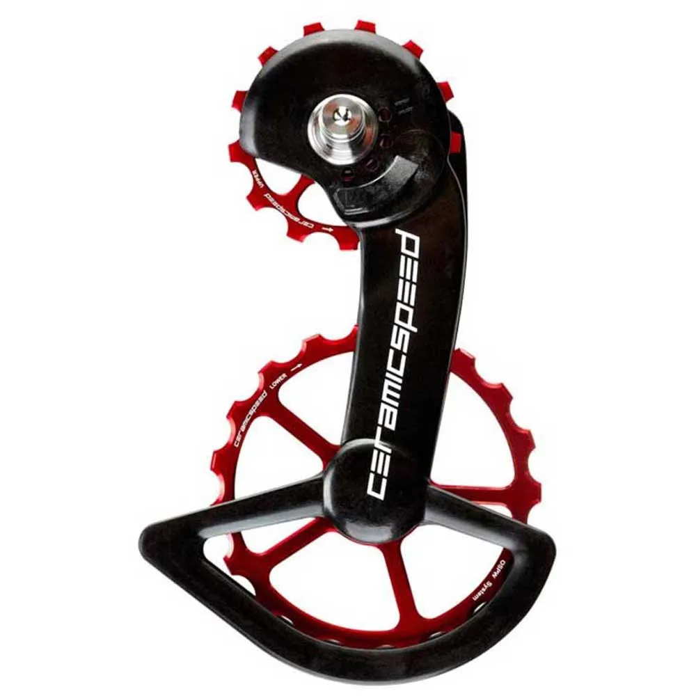Con una rueda de polea superior de 13 dientes y una rueda de polea inferior de 19 dientes para proporcionar una optimización absoluta del cambio trasero. Las ruedas de polea de aluminio de gran tamaño superior e inferior vienen equipadas con rodamientos CeramicSpeed estándar o revestidos.