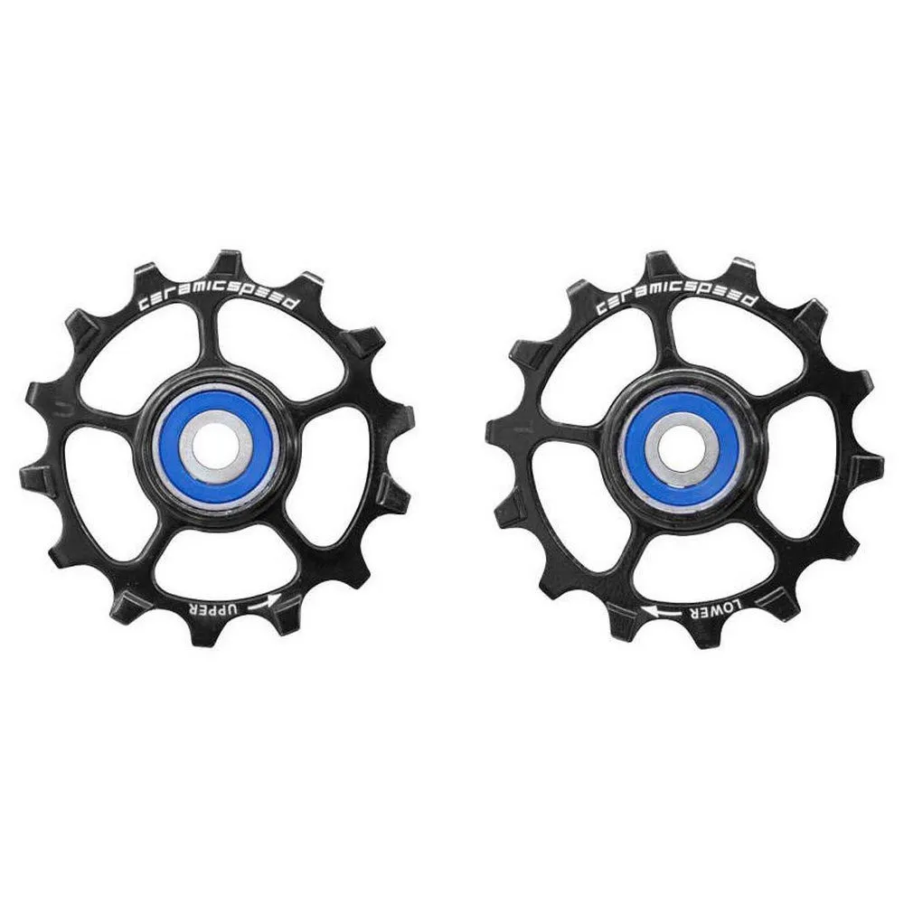 Estas ruedas de polea CeramicSpeed funcionan con menos resistencia, lo que aumenta la potencia transmitida a la rueda trasera y también una mayor durabilidad, ya que dura más entre los intervalos de reemplazo.